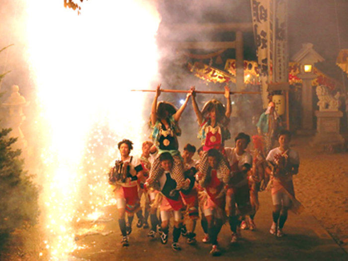 かほく市木津区の秋季祭礼。仕掛け花火が祭りを盛り上げます。