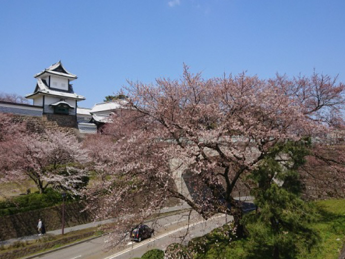 「兼六園」から望む石川門。花見の時期は多くの市民・観光客で賑わいます。