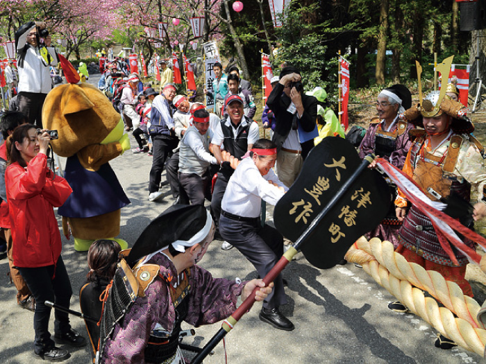 100人 VS 100人! 八重桜の下で、お隣の市と住民同士の大綱引き合戦!