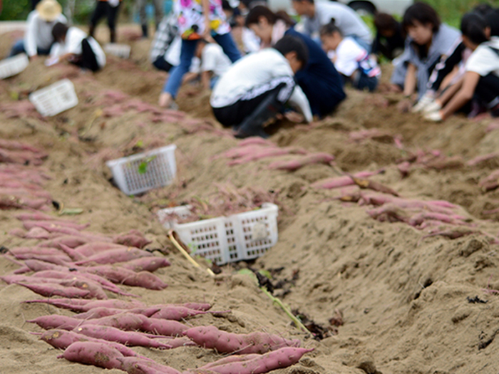 サツマイモの栽培が盛んな砂丘のまち内灘では、こども達による芋掘りが秋の風物詩です。